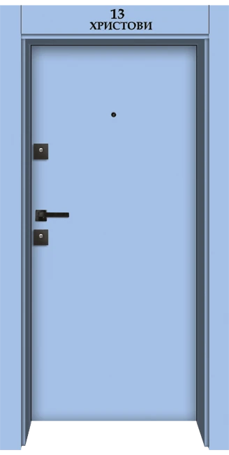 - Декоративни опции – фрезоване, лайсни, възможност за надпис с фамилия и номер на апартамент, избор на пасивна дръжка, избор на активна дръжка от няколко модела;